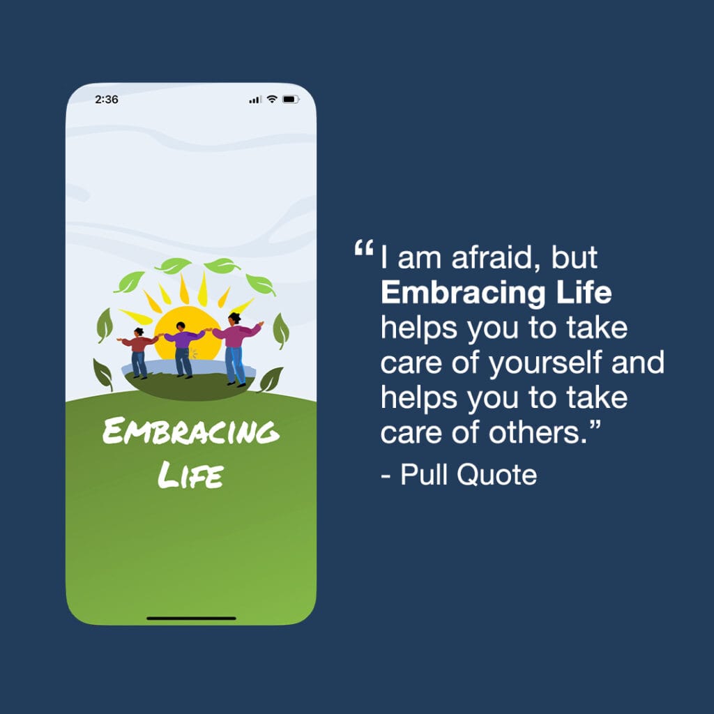 Our goal was to connect users and raise awareness of the Embracing Life App with communities and audiences that needed it. The app aims to support positive, healthy lives, championing health promotion, suicide prevention, intervention, and postvention.